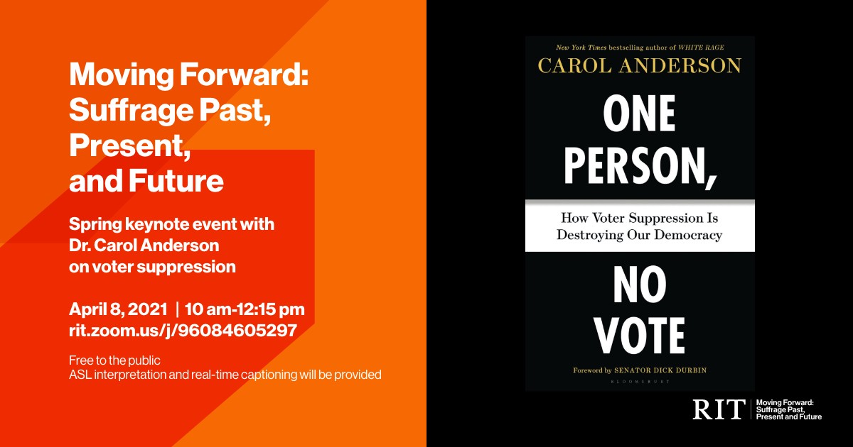 The event is hosted by RIT's special program Moving Forward: Suffrage, Past, Present and Future. Moving Forward focuses on the history of women’s voting activism; the problems and questions that the 1920 expansion of voting rights opened and left unsolved; and the work that remains to be done to continue expanding political representation and participation for all women.