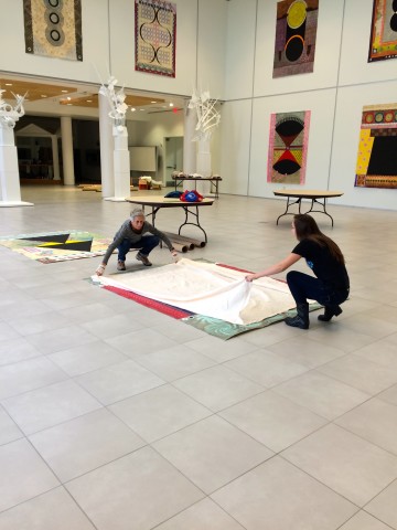 This exhibition features artist Benigna Chilla’s series of large scale paintings created after a 2012 stay in Bhutan. Her process as an artist begins with inspiration from ancient, geometric patterns found in Bhutanese architecture, textiles, and nature. These recent paintings explore both organic and constructed geometric shapes, which are organized through symmetry. Actual texture is embedded onto the canvas, layered with natural pigments like turmeric, saffron and minerals. The meditative and physical process of painting is as important to Benigna as the final pieces themselves. Also included in the exhibition is a series of black and white intaglio prints and wall installations.