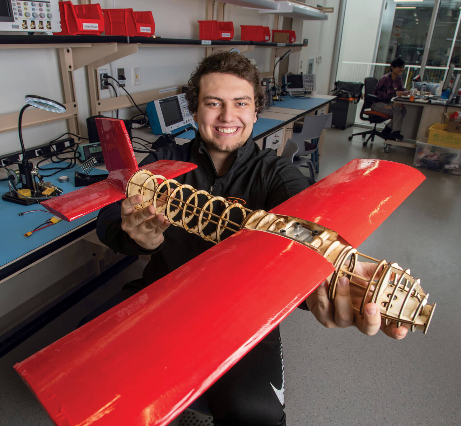 The 25 members of the RIT Aero Design Team use the space in the SHED to solder engine wires on their remote-controlled planes, which they’ll use in regional and national competitions. The SHED’s laser cutters are also used to help make parts for the planes. Brandon Badaszewski, a fifth-year electrical engineering and mechanical engineering double major from Blasdell, N.Y., is president of the club.