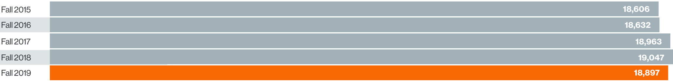 RIT’s overall enrollment has remained steady over the past five years. RIT also enrolls deaf and hard-of-hearing students at the National Technical Institute for the Deaf as well as throughout RIT’s other colleges. At the doctorate level, the university is growing its Ph.D. programs at a rapid pace.