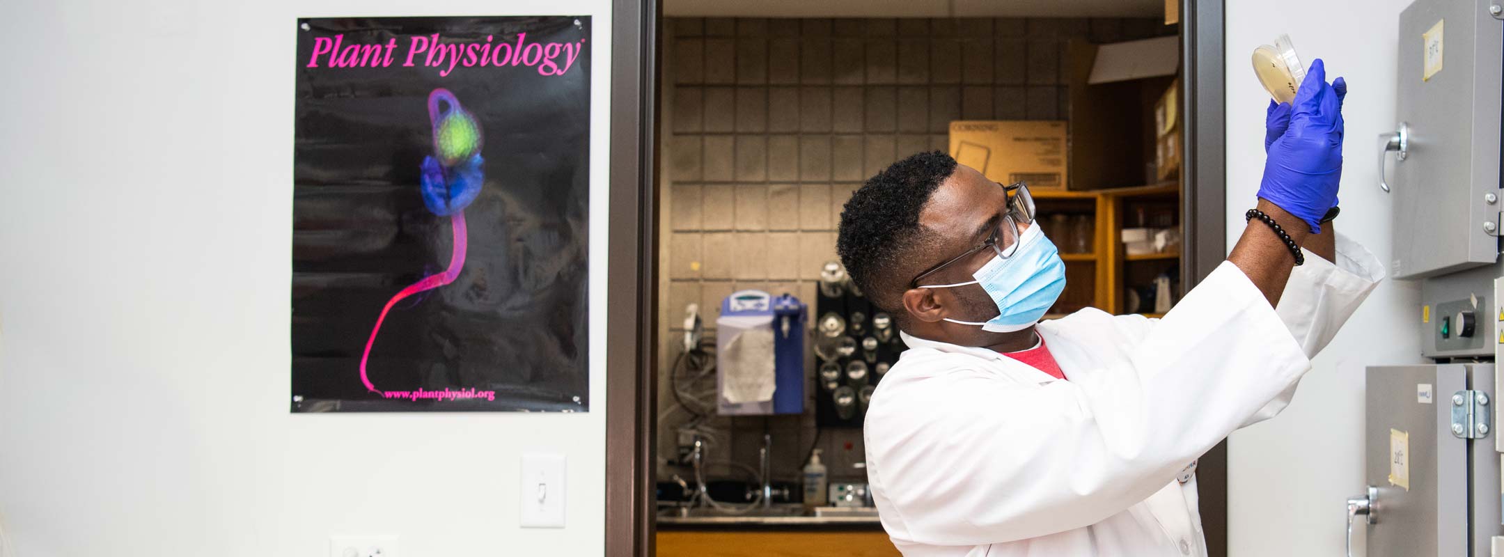 Professor Andre Hudson conducts experiments to see if the air ionization systems RIT purchased would be effective at killing microorganisms.
