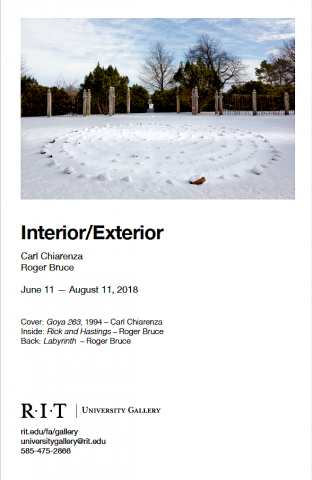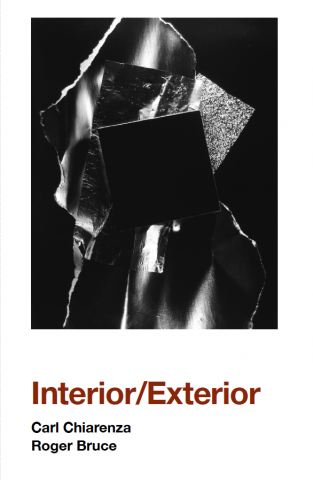 Exhibition brochure cover with text 'Interior/Exterior - Carl Charenza, Roger Bruce with black and with abstract photographic image