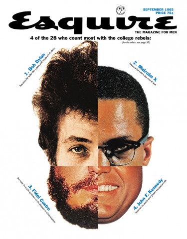 Esquire magazine cover - September 1965 - Bob Dylan, Malcolm X, John F. Kennedy, Fidel Castro ©George Lois/Esquire