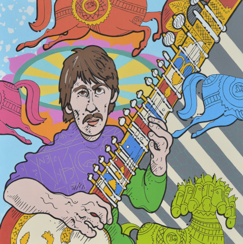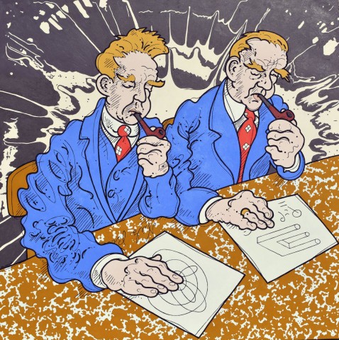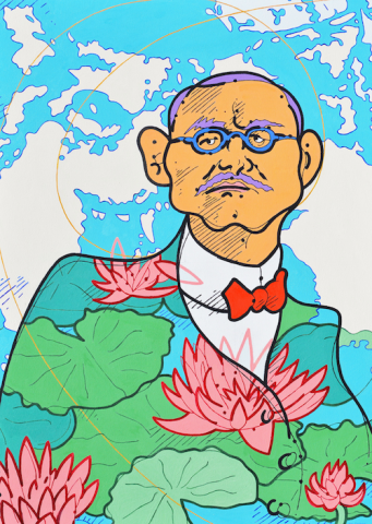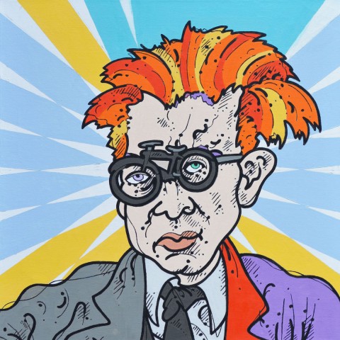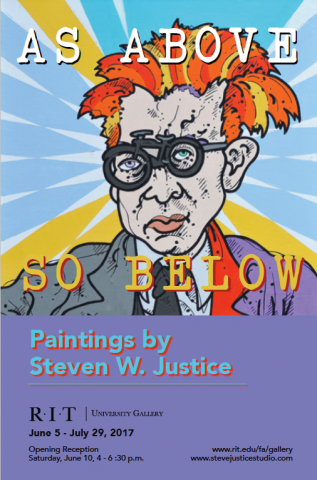 A mind-blowing technicolor installation of satirical portrait paintings depicting scientists, musicians, poets, saints, and sinners – Steven W. Justice (b. 1956) exults in and examines a plethora of personalities and introduces unlikely partnerships on multi-hued and patterned canvases. The exhibition will take command of the twenty vertical feet of exhibition space in University Gallery.