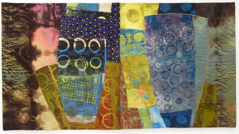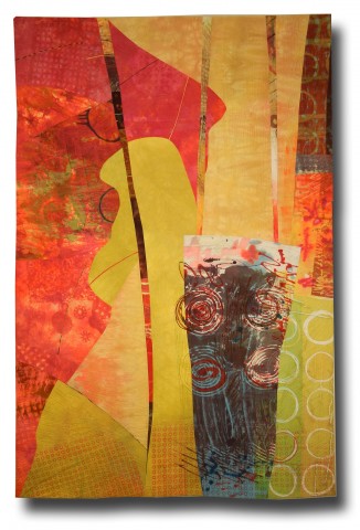Pat Pauly uses personal imagery and freeform surface design in her fiber work, a process she describes as "painting with fabric." The work is bold, graphic, and often suggestive of natural forms and patterns. Using commercial and artist-designed textiles as the medium, these works are intricately assembled to obtain the finished work.