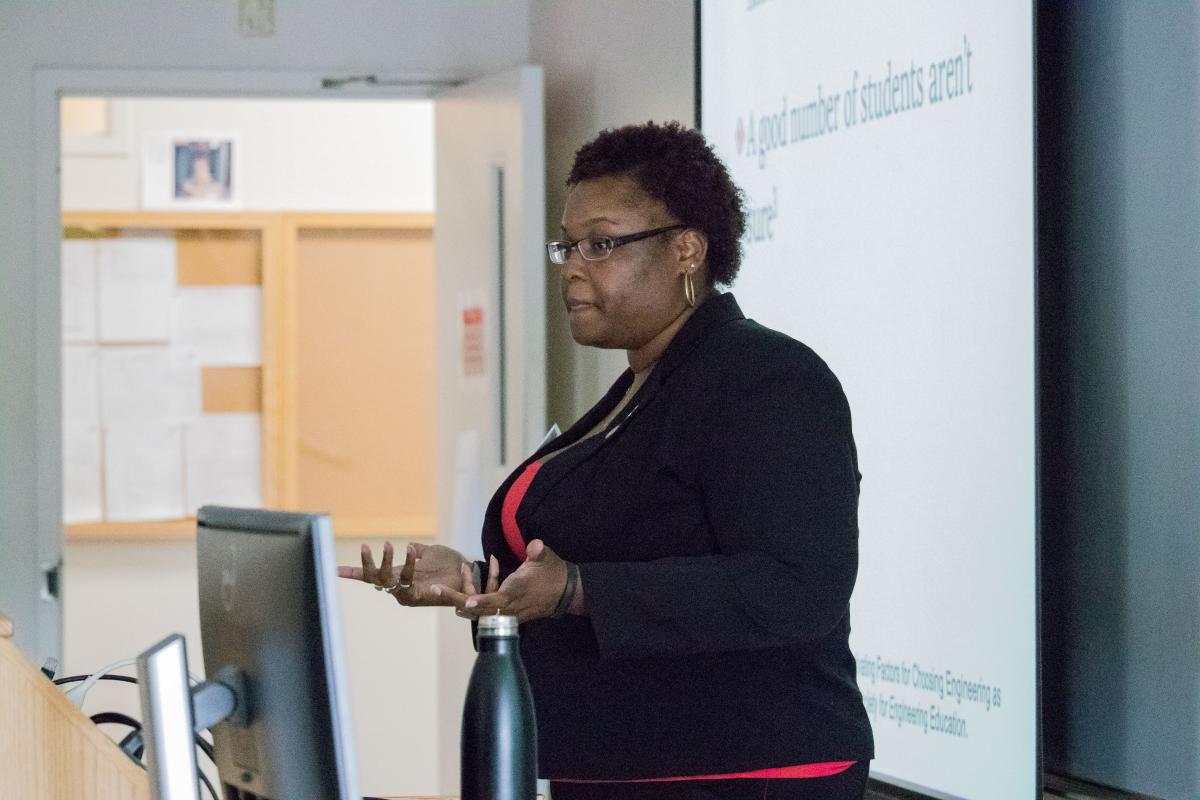 Racheida Lewis, a Gates Millennium Scholar and an Engineering Education Ph.D. candidate at Virginia Polytechnic Institute and State University (Virginia Tech). Lewis attended the University of Virginia, where she was named a GEM University Fellow and earned her M.E. in Electric Engineering. She also holds a B.S. in Electrical Engineering with minors in mathematics and physics from Virginia Commonwealth University. Lewis’ transition into the field of engineering education is direct result of her research interests, which include, exposure and recruitment of engineering students from diverse backgrounds; retention and persistence in engineering; and the development of self-efficacy in engineering students.