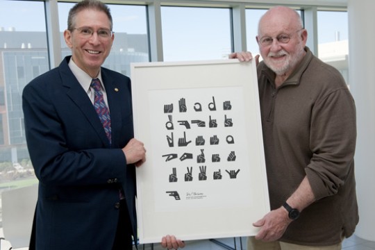 Peter A. Blacksberg ’75 (photography) became fascinated by fingerspelling as a student and spent the next 42 years crafting a modern typeface for American Sign Language. -
