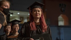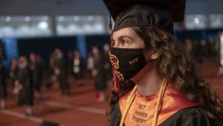 The College of Art and Design's in-person commencement ceremony was held Friday, May 14, in the Gordon Field House and Activities Center. While guests were not permitted to attend the indoor ceremony in light of current New York State regulations, it was live-streamed on RIT's graduation website.