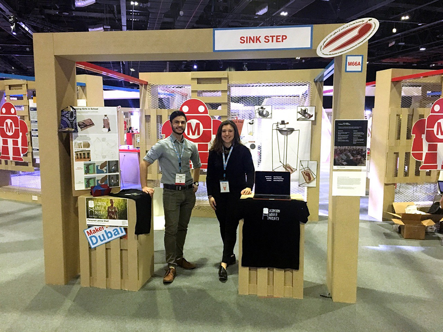 Frank Barletta '19 (Industrial Design) and Hannah Giancola '19 (Industrial Design) presented projects that address hygiene issues in rural Uganda at the 2019 Maker Faire Dubai as part of an RIT Global International Research program.