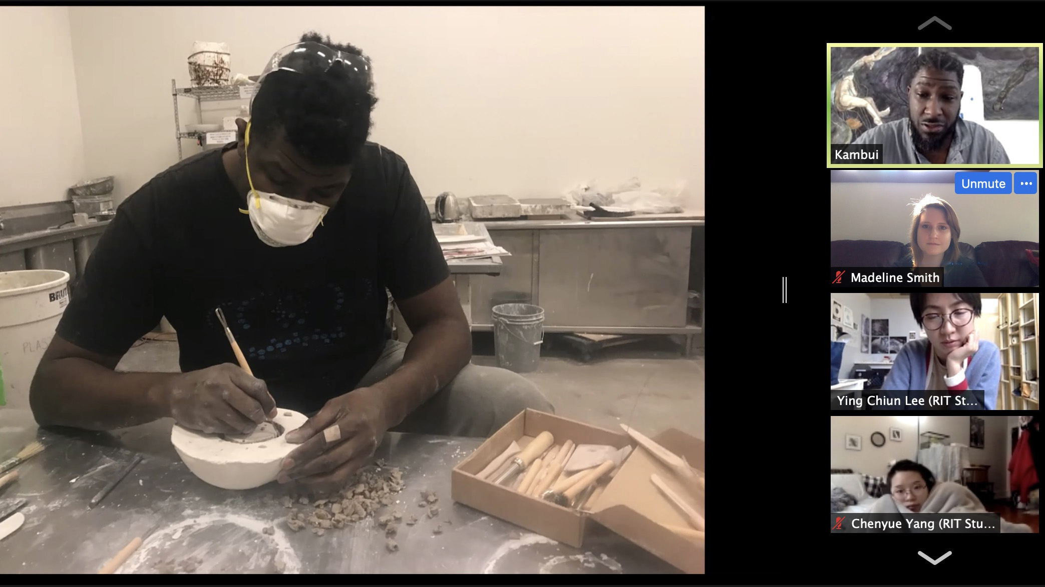 The program is reimagining its lecture series during the COVID-19 pandemic, welcoming visiting artists virtually for equally substantive discussions and critiques. In the fall of 2020, RIT hosted four artists to engage with students and faculty via Zoom.