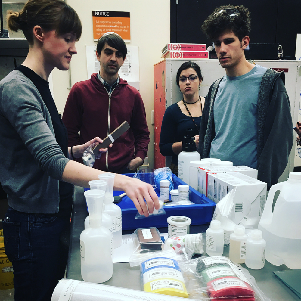 Karlyn Sutherland, an architectural designer and glass artist from Scotland, visited RIT's glass program twice in the fall of 2017, leading talks and demos.