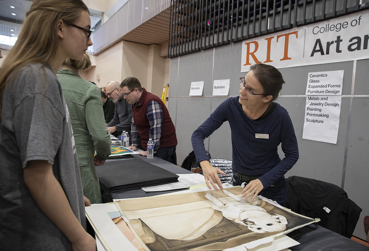 RIT College of Art and Design's faculty roster of renowned artists, photographers, designers and filmmakers — either virtually or in-person — meet one-on-one with prospective students during NPD events. They provide useful portfolio feedback and share information about our range of programs in the arts and sciences.