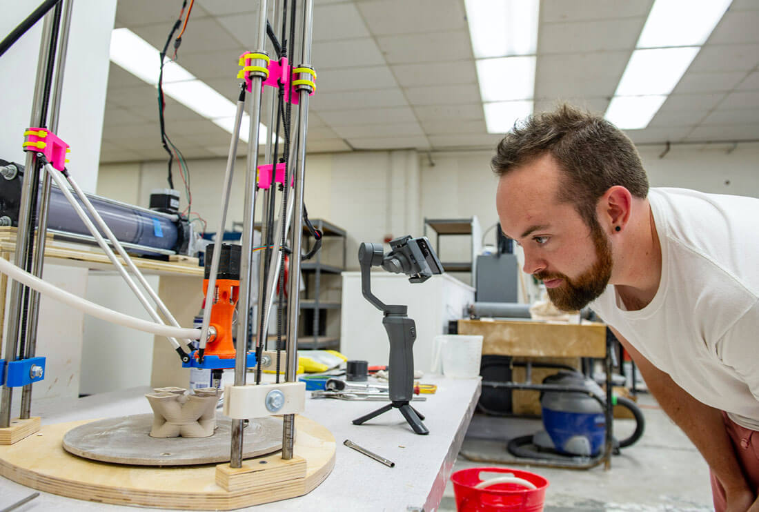 RIT is a place where technology and fine art can unite and flourish together. In the summer of 2019, RIT’s Ceramics program hosted a studio intensive workshop for professional artists exploring, among many other processes, 3D ceramic printing. The workshop was run by RIT assistant professor Peter Pincus and SUNY New Paltz associate professor Bryan Czibesz, whose work features relationships between technology, material and object making. Using 3D ceramic printers in RIT’s ceramics studio, course attendees engaged the technology and investigated its many possibilities.