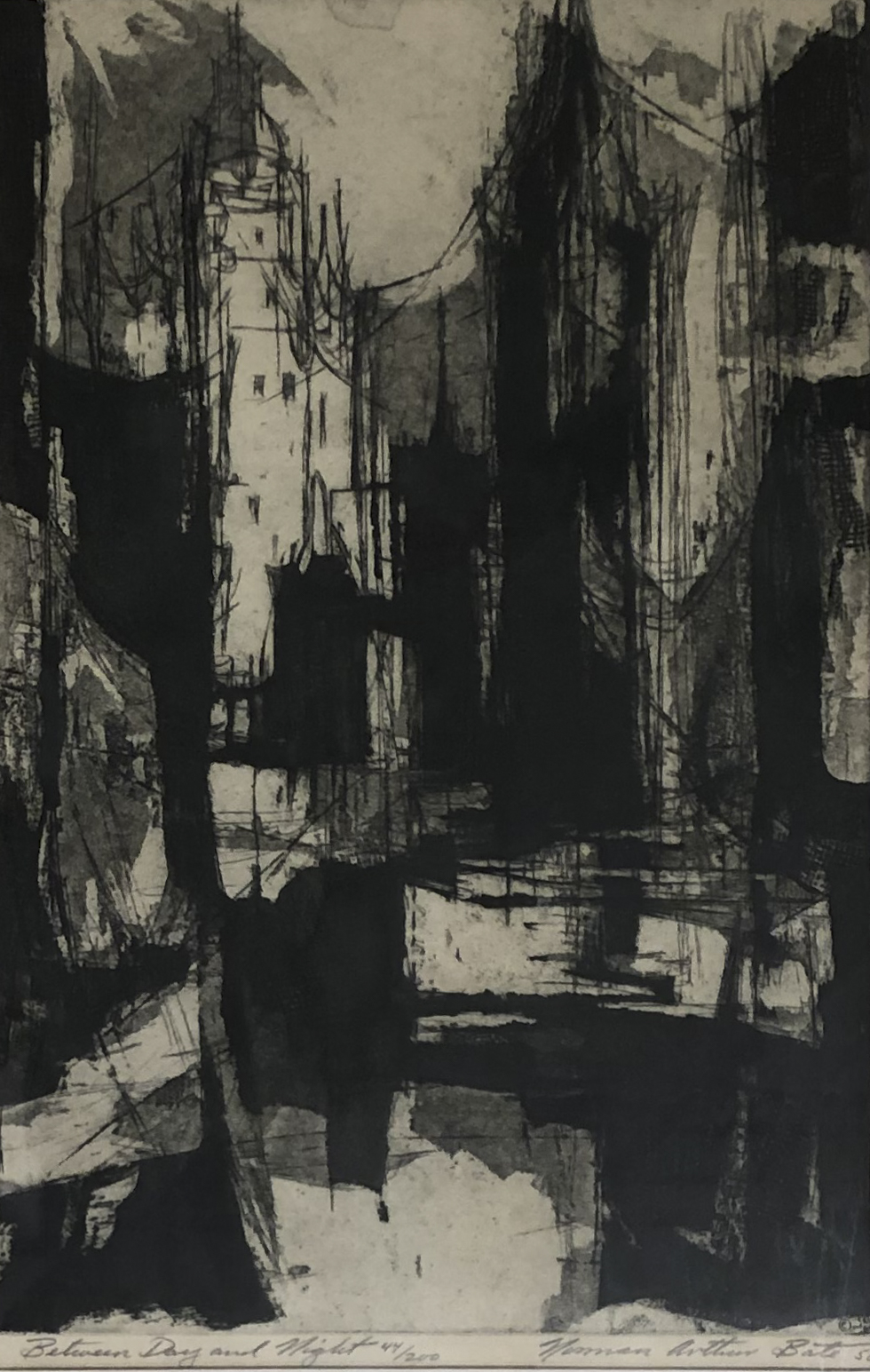 Between Day and Night Art Images Artist Norman Arthur Bate Type Etching Year 1958 Size 19" x 12" Available to Loan No