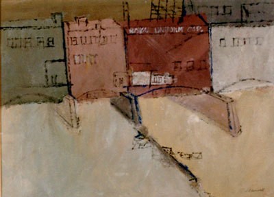 Untitled Art Images Artist John Channell Type Painting Size 19" x 14" Available to Loan No Notes Buildings on the river.