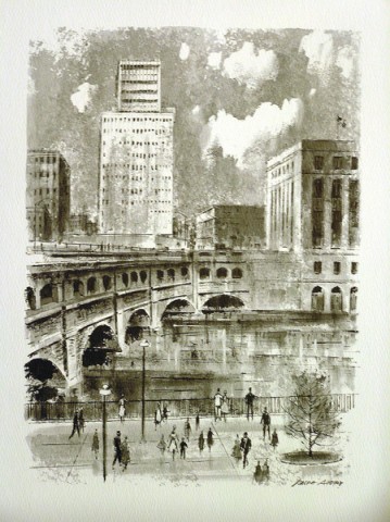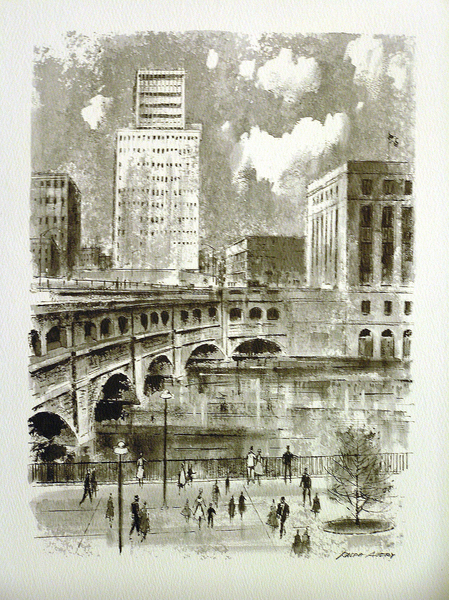 Midtown Plaza: (across the bridge) Art Images Artist Ralph Avery Type Reproduction (Lithograph) Size 13 1/4" x 10 1/4" Available to Loan No