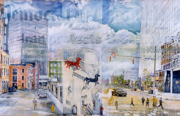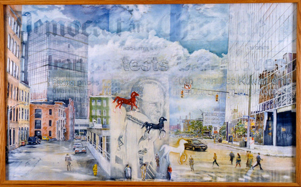 Rochester, State and Main Street Art Images Artist Luvon Sheppard Type Painting Year 1990 Size 7' x 9'