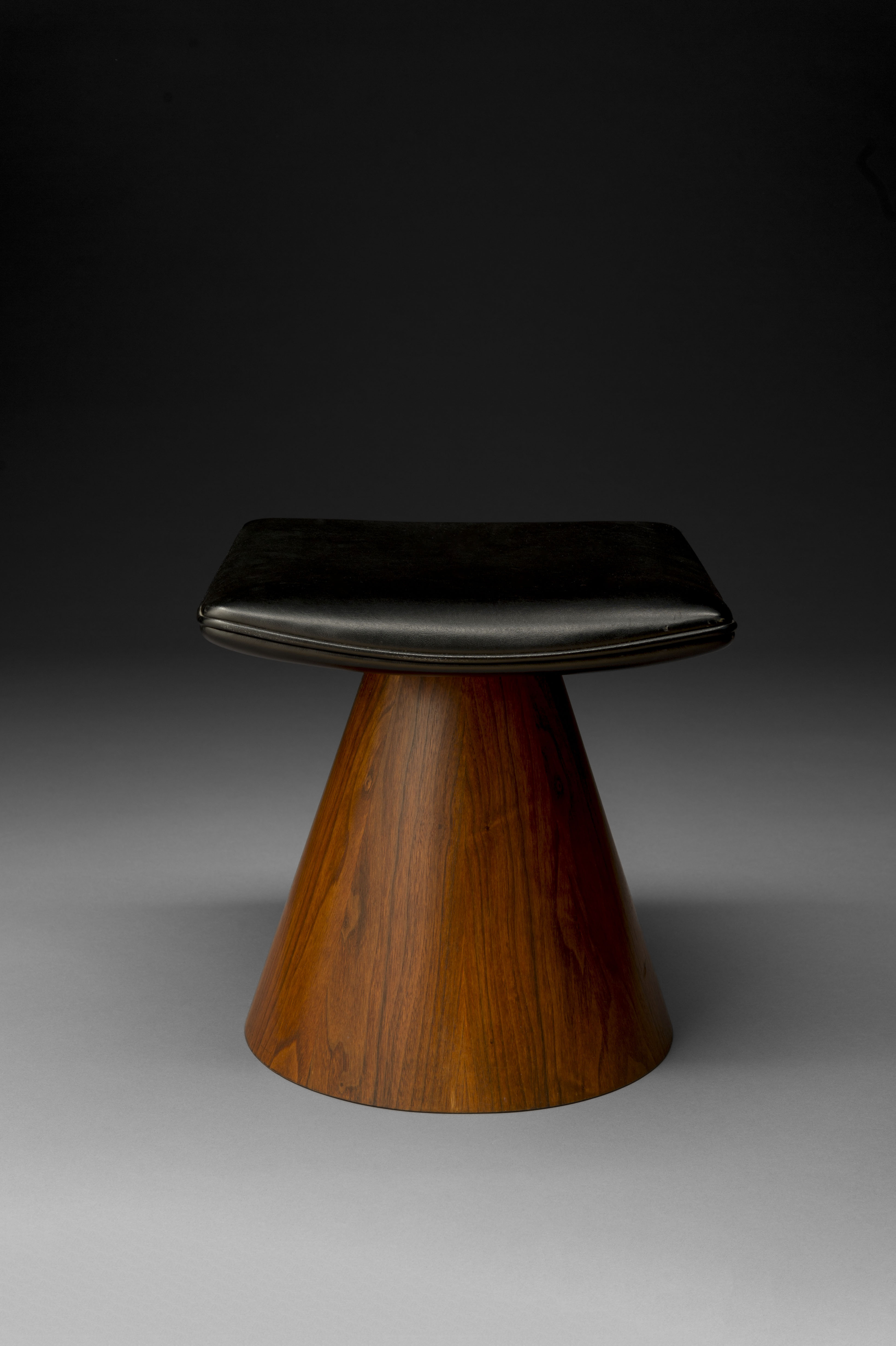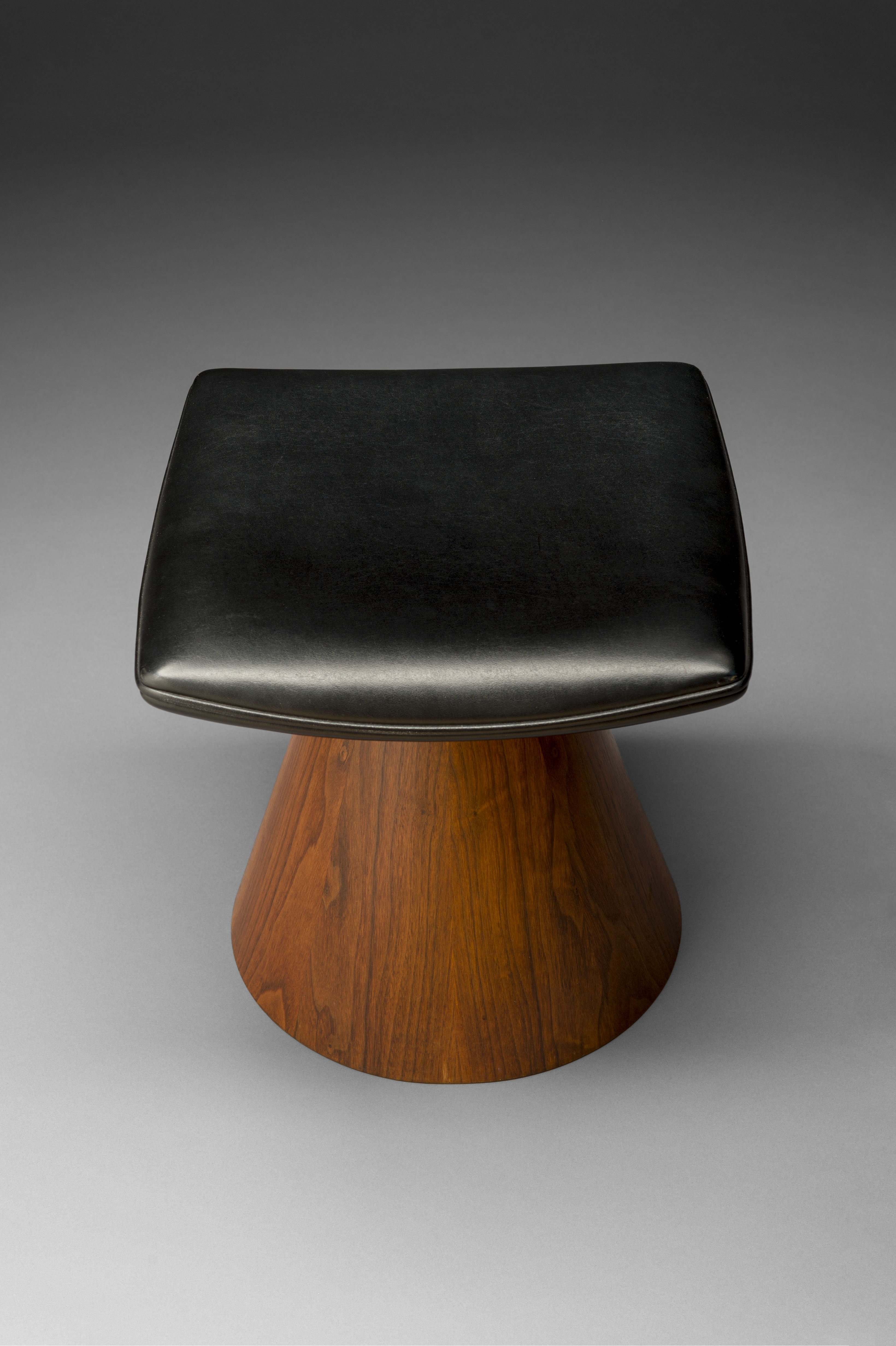 Walnut and leather pedestal stool that was used in the RIT chapel.