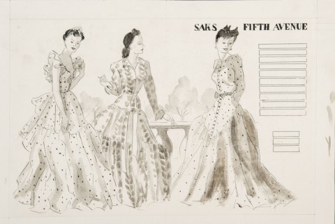 Untitled (ad with evening gowns) Art Images Artist Frances Wolf Type Drawing Notes Pen and ink drawing