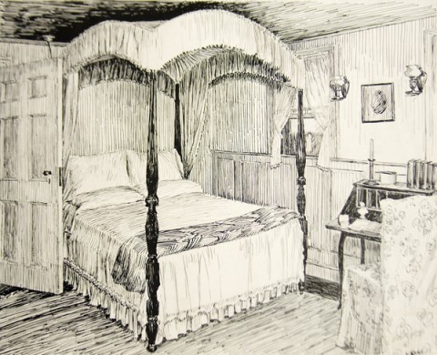 Untitled (Bedroom) Art Images Artist Lillian Kolko Type Pen and ink drawing Size 11.75" x 14" Available to Loan No