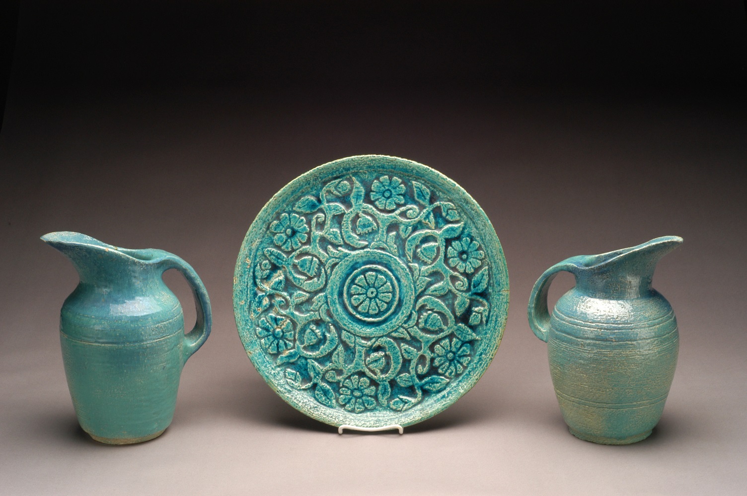 Untitled (Ceramic Platter and pitchers) Art Images Artist Lulu Scott Backus Type Craft Size 1" x 14" x 14" Notes Contains small crack.