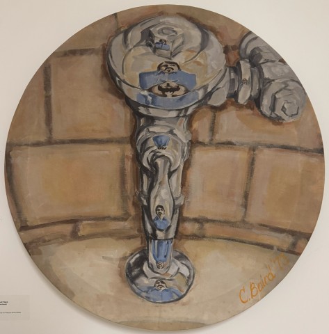 Untitled - chrome faucet with multiple reflections of a man's face Art Images Artist Charles "Chuck" Baird Year 1974 Location Wallace Library, 3rd floor Available to Loan No