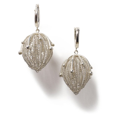 Untitled, earrings Art Images Artist Sowon Joo Type Craft Size 2" Notes Sterling silver and argentium silver earrings.