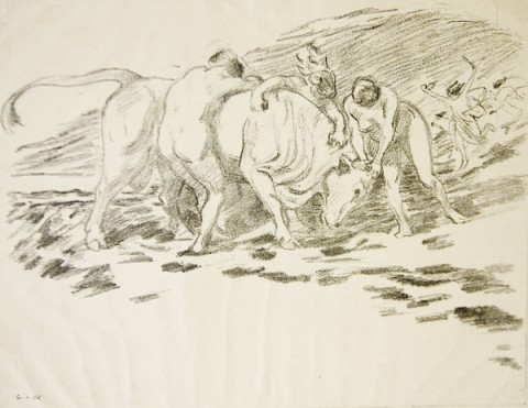 Untitled (People with Cows) Art Images Artist L. Hofman Type Lithograph Size 15.25" x 20" Available to Loan No