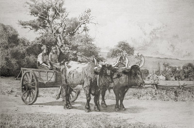 Untitled (Two Children in an Ox Drawn Cart) Art Images Artist John Carleton Wiggins Type Print Size 22 x 18" Available to Loan No