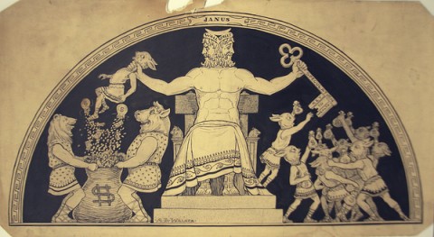 Untitled (Wall Street) Art Images Artist A B Walker Type Drawing Year published in LIFE in 1913 Size 12 ½" X 23"