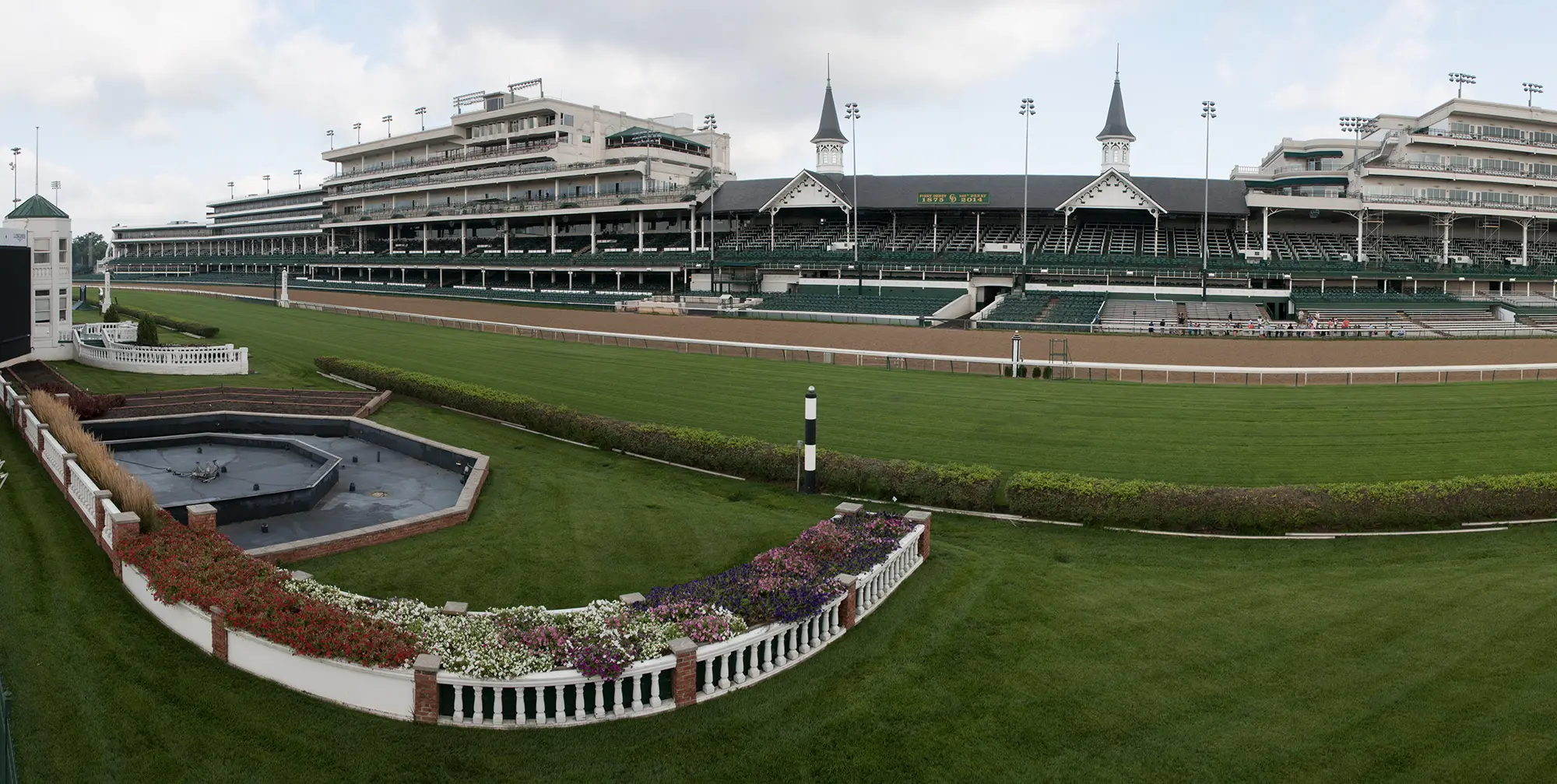 Known as the home of the Kentucky Derby and the Kentucky Oaks, Churchill Downs Racetrack conducts Thoroughbred horse racing in Louisville, Kentucky during three race meets in the Spring, September, and the Fall. The racetrack occupies 147 acres, featuring a one-mile dirt, oval racetrack and a seven furlong turf race course. Thoroughbred racing, the Kentucky Derby, and the Kentucky Oaks have run continuously at Churchill Downs Racetrack since 1875. In addition, Churchill Downs Racetrack has hosted the Breeders’ Cup World Championship eight times.