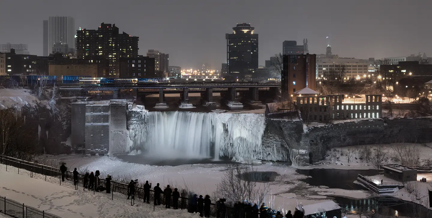 This 96-foot urban waterfall set on the Genesee River is a recognizable Rochester landmark that was the site of much of the area’s early industrial development, where industry was powered by the falling water.