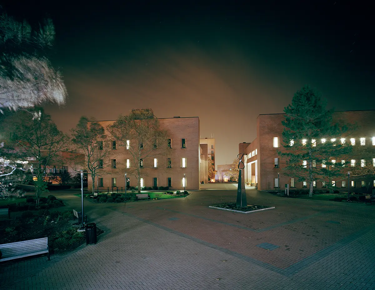 RIT’s Infinity Quad features the Infinity Loop sculpture in the main academic quad. Infinity Loop was designed by sculptor Jose de Rivera, and was installed when the Henrietta campus opened in 1968.