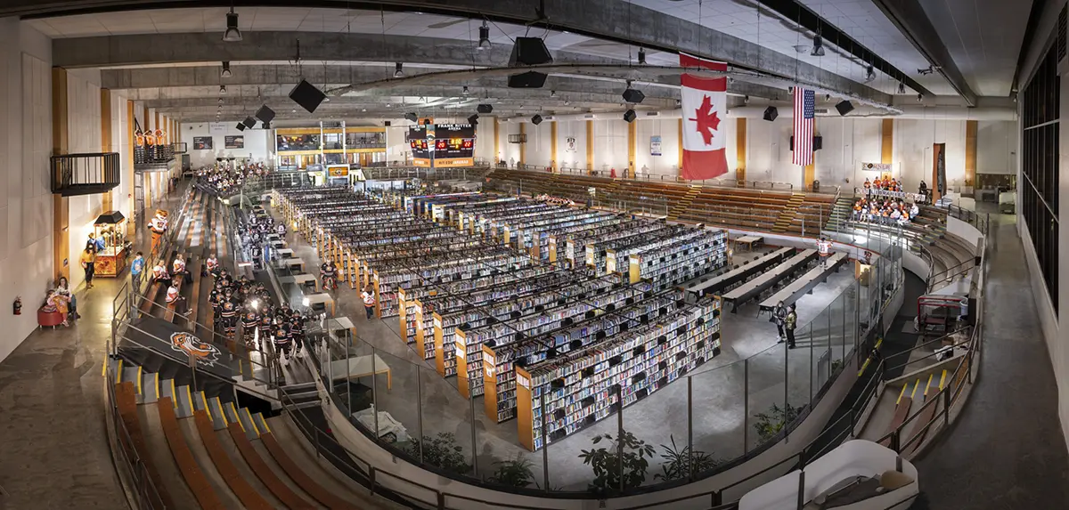 During the Covid-19 pandemic, the ice arena was temporarily transformed into the university’s primary library space.