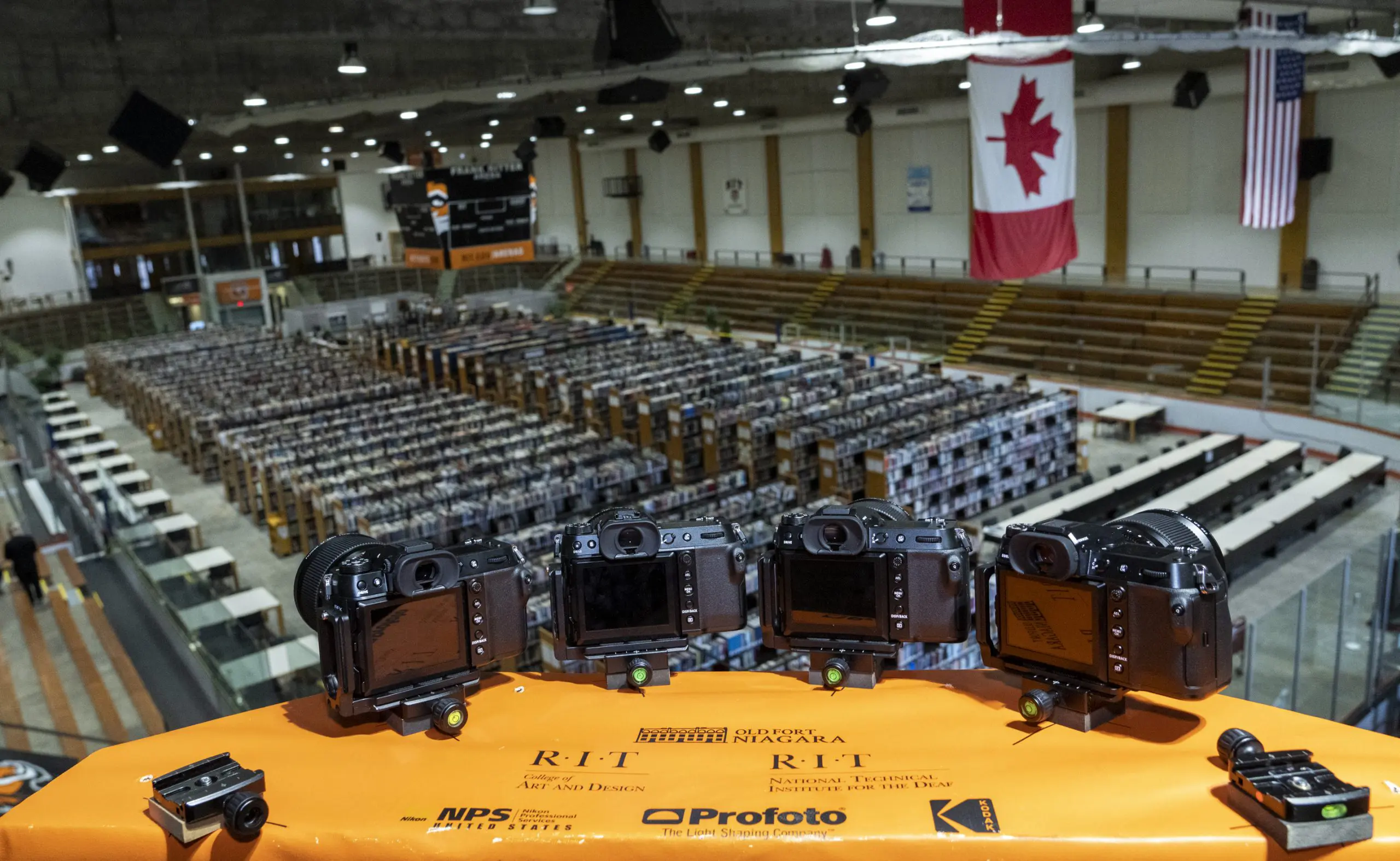 In all, four cameras and lighting gear from the SPAS and NTID visual communication studies equipment cages were used to create a 160-degree angle-of-view final image. The full resolution of the Big Shot image is more than 160 megapixels, measuring 30.5”x 64.” This year’s final image was a one-minute exposure at f11 (ISO 100).