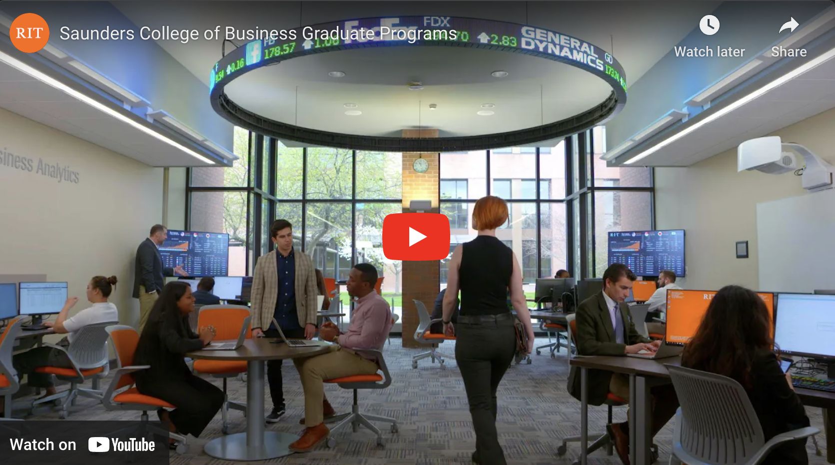 As part of RIT, Saunders graduate business degrees leverage the resources of a large technical university. This positions our graduates favorably in the eyes of employers looking to stay competitive in a business world that continues to rely more heavily on technology.