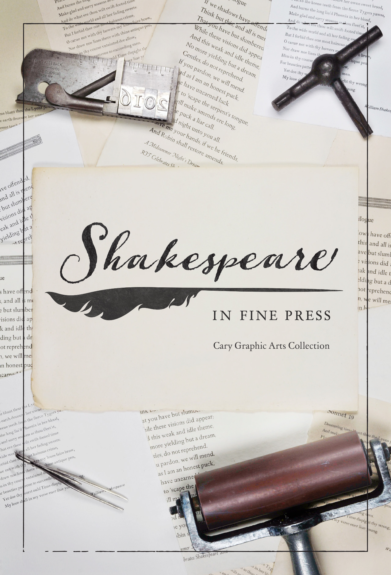 Shakespeare in Fine Press commemorates the 400th anniversary of the death of William Shakespeare with a selection of fine press editions held in the Cary Graphic Arts Collection. Ranging from the late 18th century to the present, these books demonstrate the creative ways that printers have moved Shakespeare’s plays from the stage to the page, and how the act of printing his plays becomes a performance unto itself. On display are examples from some the most famous fine presses including: the Kelmscott Press, Doves Press, Officina Bodoni, Golden Cockerel, and Gehenna Press.