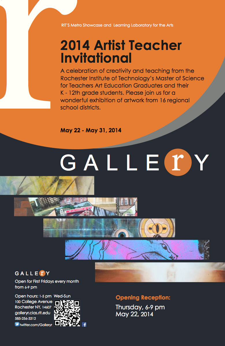 A celebration of creativity and teaching from the Rochester Institute of Technology's Master of Science for Teachers Art Education Graduates and their K-12 grade students. Please join us for a wonderful exhibition of artwork from 16 regional school districts.