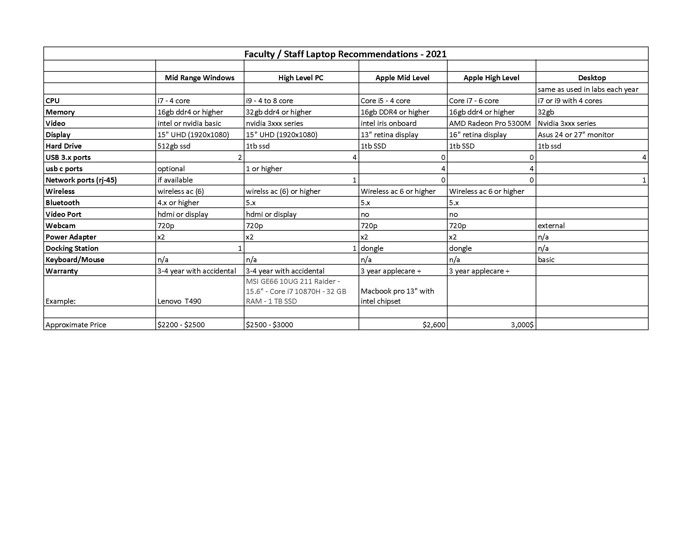 If you would still like to purchase a laptop or desktop, each department has specifications that will assist you with your decision.
