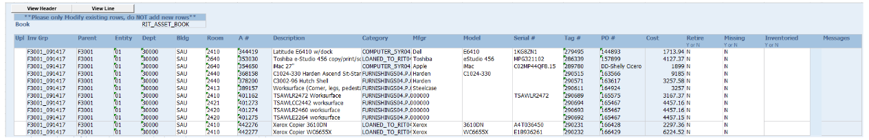 - Mapping - select ‘RIT FA Physical Inventory Mapping’ from dropdown menu