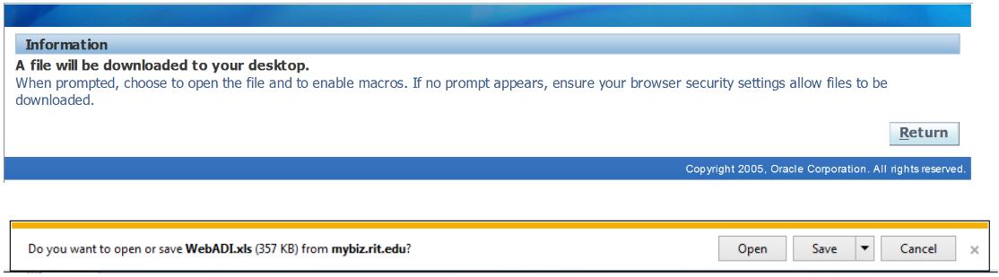 - An Information screen will open and you will be prompt to open or save the document. Click the “Open” button.