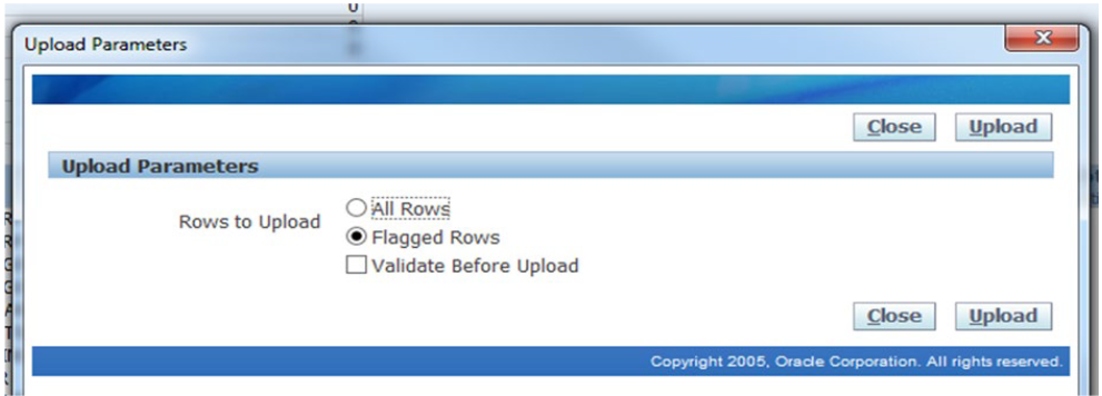- Upload parameter window - Default: Flagged Rows, keep default value