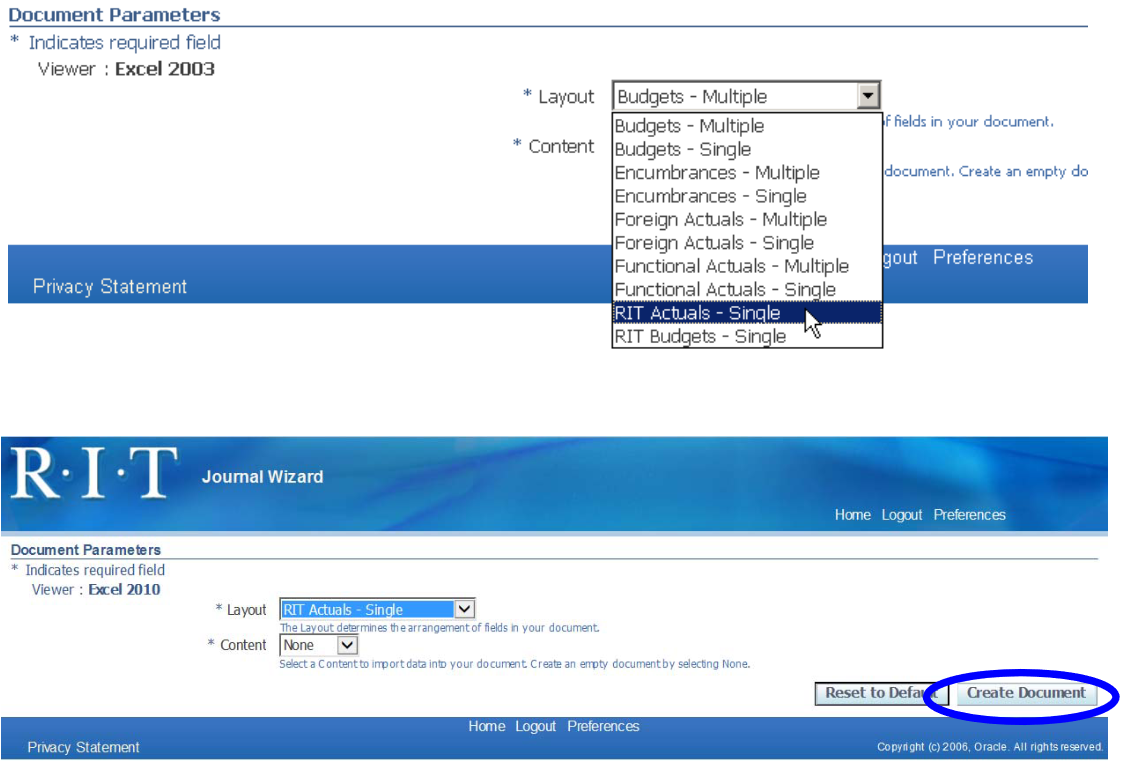 - Select ‘RIT Actuals Single’ from the “Layout” window.