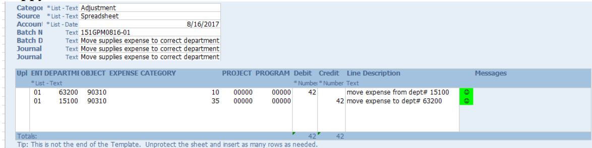 - Once all the journal entry lines have been entered into the template, it can be uploaded into the general ledger.