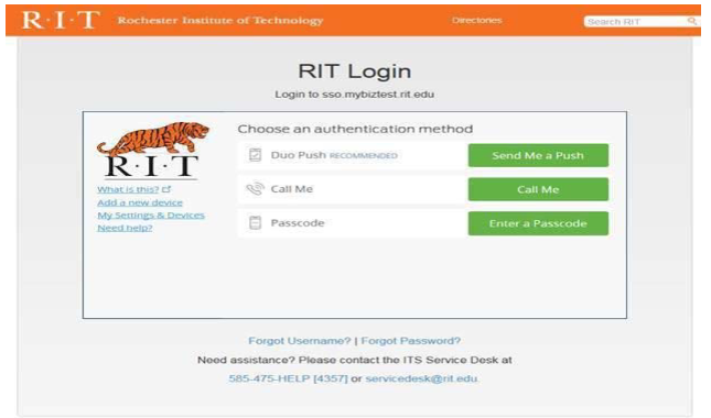 - Passcode: Click on the green key on your phone and enter number into the field next to “Log in” in the RIT Login screen.