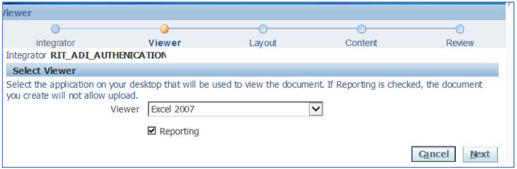 - A Viewer screen will open. Leave “Excel 2007” in the “Viewer” field and click the “Next” button.