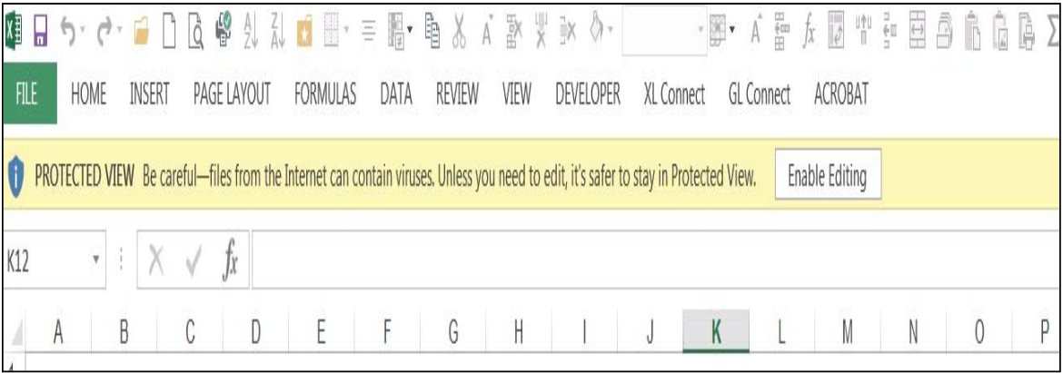 - Click “Enable Editing” when a new blank spreadsheet opens with a “Protected View” warning