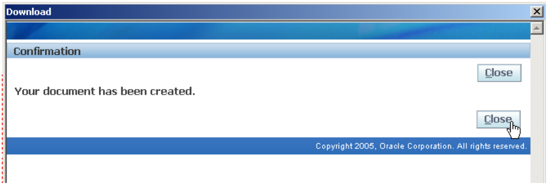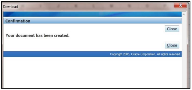- Click the “Close” button once the Journal Entry template has finished downloading into Excel. The message in the “Download” window will confirm that your document has created.