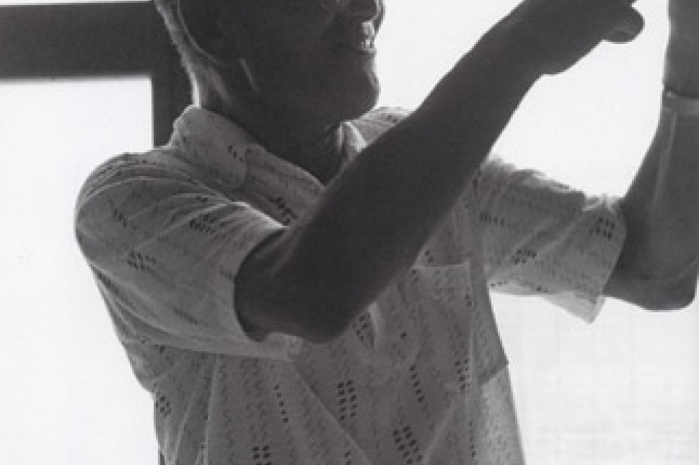 Through the camera’s finder, I was touched by the glances of the deaf and dumb, inspired by the optimism in their smiles, shaken by the view of their lives that showed, without their willing it, through their backs. There is a drama in each of them. Each made me feel he has had the strength it took to make it through, even as he shouldered everything that comes with being both handicapped and a victim of an atomic bomb.