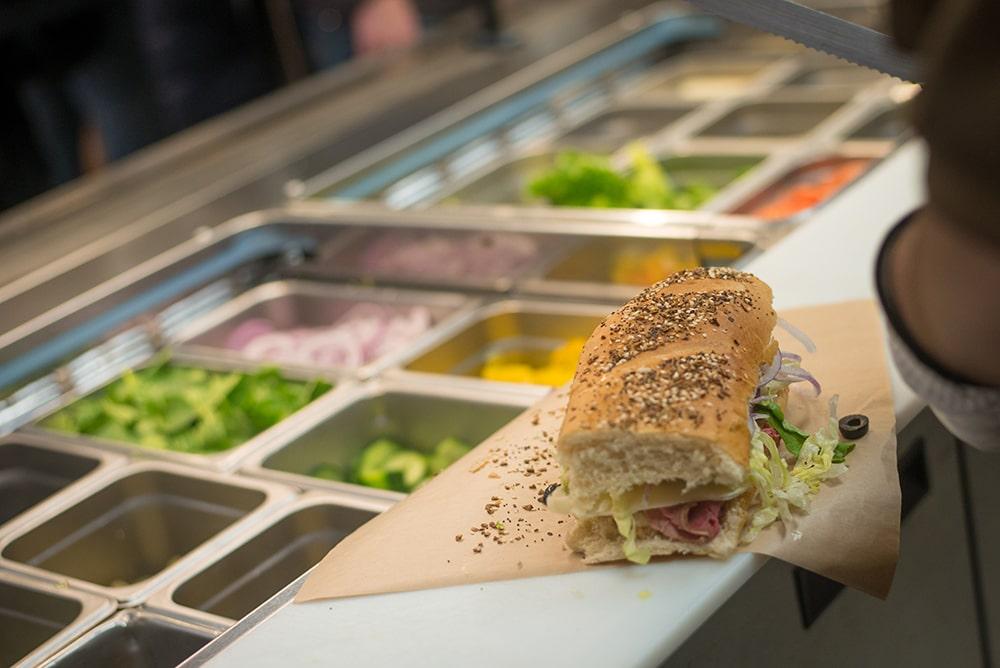 We are open for breakfast and lunch. We have breakfast sandwiches, a breakfast grill, a build-your-own salad and sandwich station, and daily entree specials. Our vegan grill is open daily and serves specials. Grab-and-go salads, fruit cups, yogurts, bottled beverages, and coffee from Finger Lakes Coffee Roasters® are available.